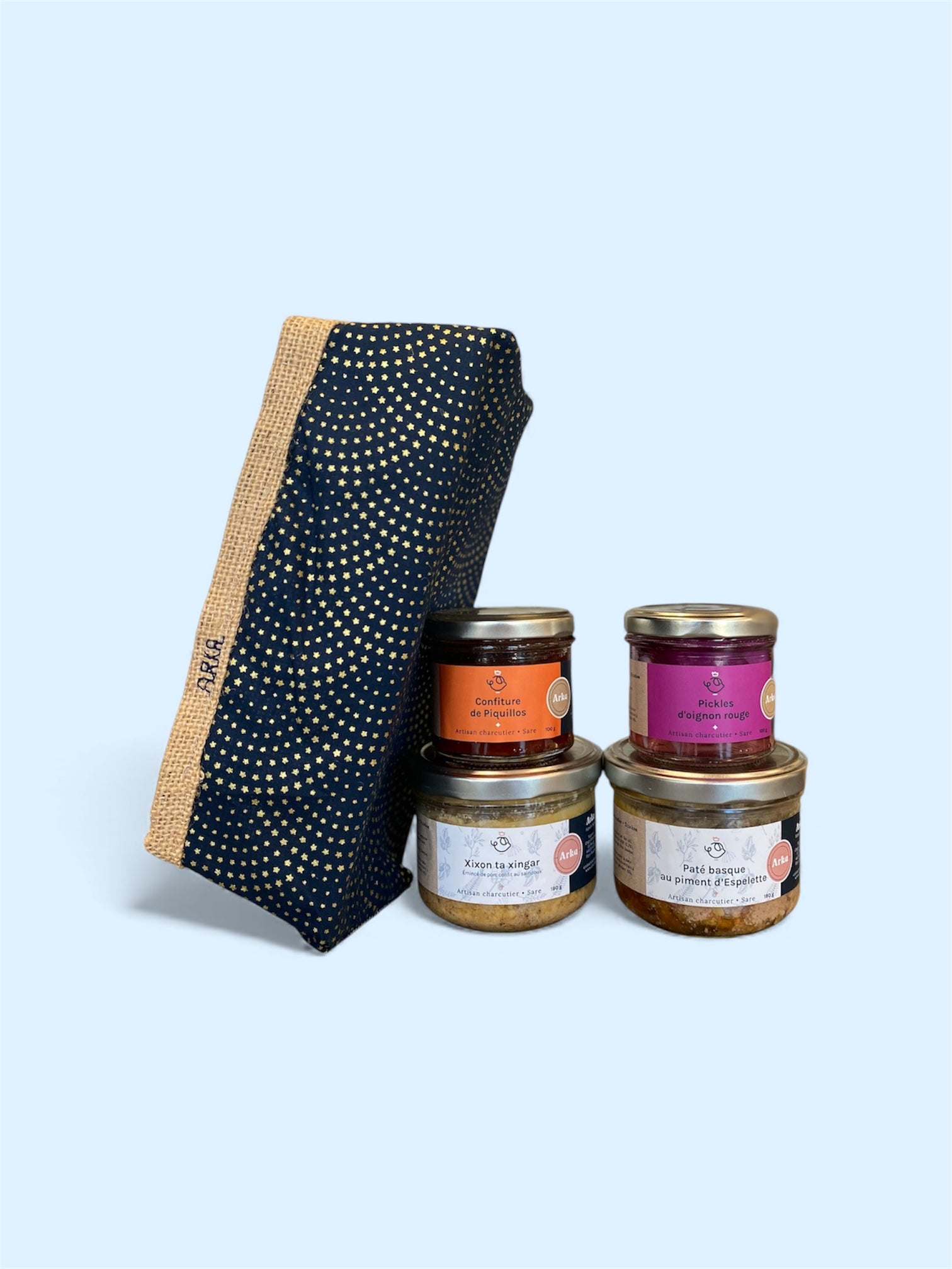Toutes les conserves sont fabriquées sur place au sein de notre atelier à Sare au Pays Basque. Nous travaillons en direct avec les éleveurs de porcs Manex (croisement autour de la race large white). Les cochons sont élevés du côté de Saint Jean Pied de Port à 30km de Sare.